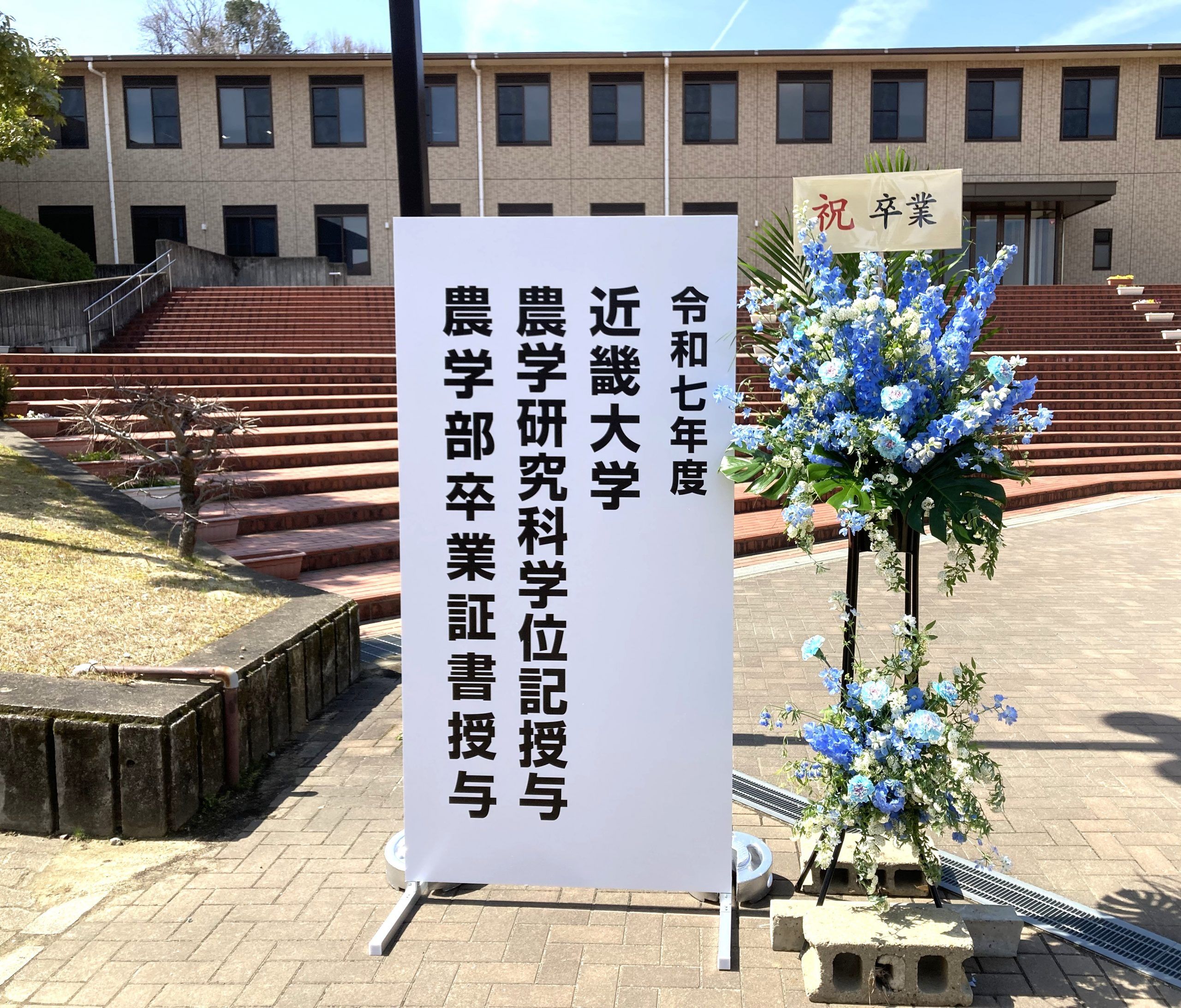 近畿大学農学部卒業証書授与式の装花を事業部(フラワーショップカトレヤ)が担当させていただきました。 大切な節目に携われたことに感謝します。 卒業生の皆様、本当におめでとうございます。